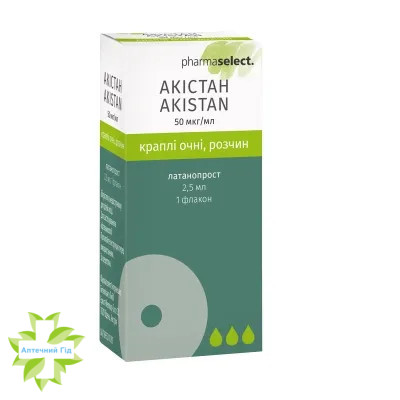 Акистан, капли глаз., р-р 50 мкг/мл по 2.5 мл №1 во флак. полиэт. с кап.