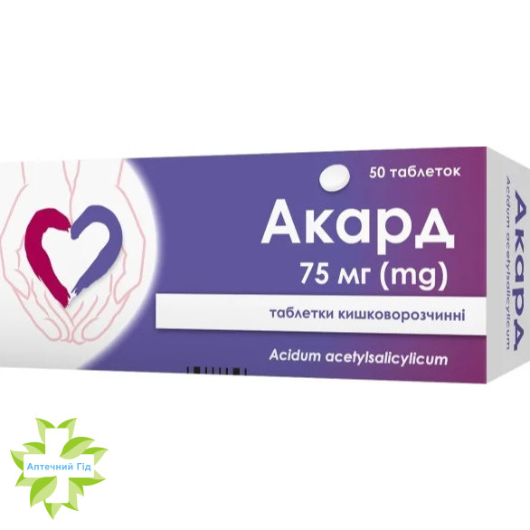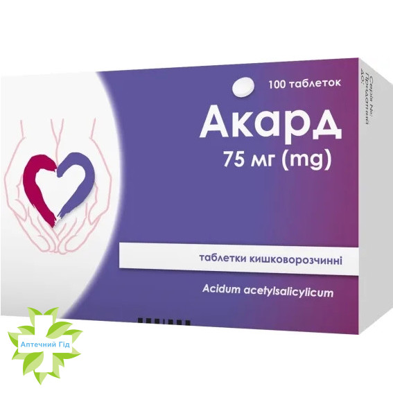 Акард таблетки, вкриті кишковорозчинною оболонкою, лікарська форма, яка не розчиняється у шлунку, через що знижується ризик безпосереднього контакту ацетилсаліцилової кислоти зі слизовою оболонкою шлунка. Розчинення таблетки та вивільнення діючої речовини відбуваються тільки у більш лужному середовищі дванадцятипалої кишки.