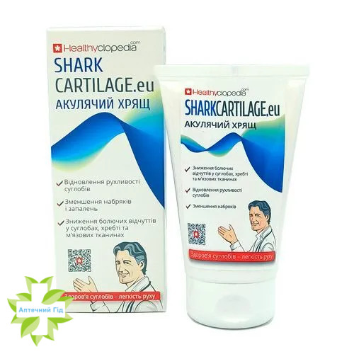 Крем SHARK CARTILAGE (АКУЛЯЧИЙ ХРЯЩ) допоможе відновити хрящову тканину при різних захворюваннях опорно-рухового апарату і спортивних травмах, зменшить запалення і набряк тканин, поліпшить рухову активність і якість життя.