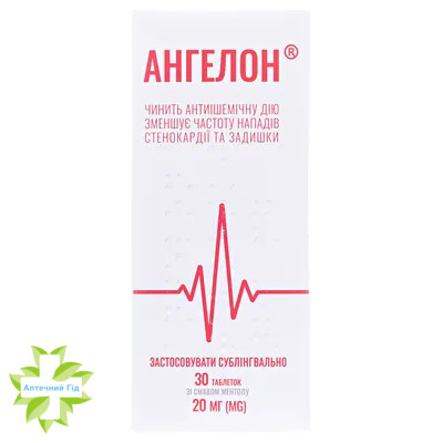 При гострих серцевих станах (напад стенокардії, аритмія) таблетки АНГЕЛОН® приймати по 10*-80 мг до покращення стану. Максимальна добова доза - 160 мг.