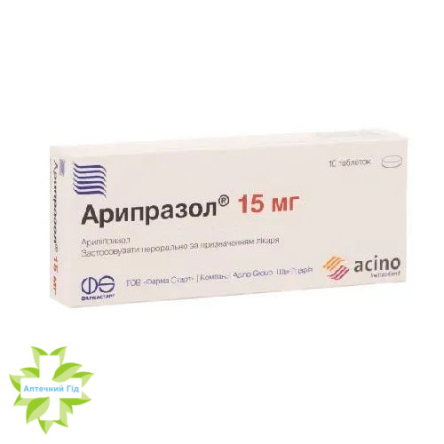 1 таблетка містить арипіпразолу 10 мг або 15 мг (у перерахуванні на 100 % суху речовину арипіпразол);