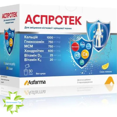 АСПРОТЕК - стимулятор регенерації кісткової та хрящової тканин. Біологічна цінність визначається властивостями складових компонентів.