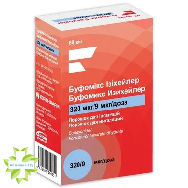 Лікарський засіб Буфомікс Ізіхейлер 320 мкг/9 мкг/доза слід застосовувати лише для підтримуючої терапії. Для підтримуючої терапії та полегшення симптомів за допомогою Буфомікс Ізіхейлер наявні лікарські форми з меншою силою дії (160 мкг/4,5 мкг/доза і 80 мкг/4,5 мкг/доза).
