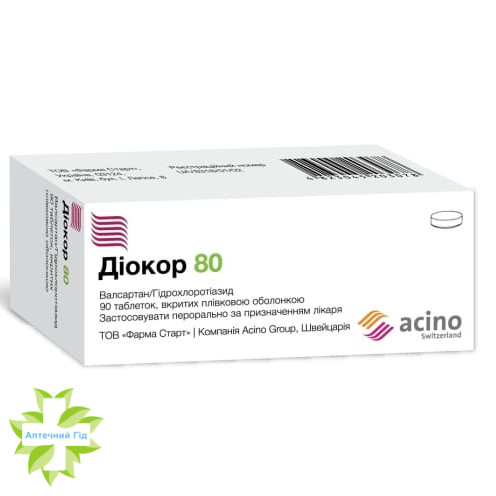 80 мг валсартану і 12,5 мг гідрохлоротіазиду (Діокор 80)