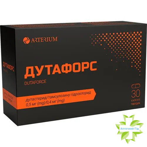 Дутафорс є комбінацією двох лікарських засобів: дутастериду, подвійного інгібітора 5α-редуктази (5 АРІ), і тамсулозину гідрохлориду, антагоніста адренорецепторів α1а і α1d. Ці лікарські засоби мають взаємодоповнювальний механізм дії, завдяки якому відбувається швидке послаблення сечовиділення, знижується ризик гострої затримки сечі (ГЗС) та зменшується імовірність необхідності проведення хірургічної операції з приводу доброякісної гіперплазії передміхурової залози.