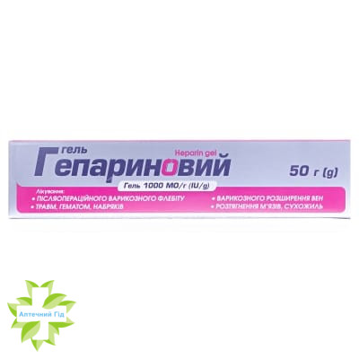 Фармакокінетика. Гепарин виявляється у плазмі крові протягом 24 годин після застосування препарату, при цьому максимальна концентрація гепарину досягається через 8 годин. Виведення відбувається переважно нирками. Нанесений на шкіру препарат не впливає на параметри згортання крові.