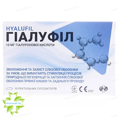 | Купить Цена 355,00 грн Гиалуфил, суппозитории ректальные, №10 |