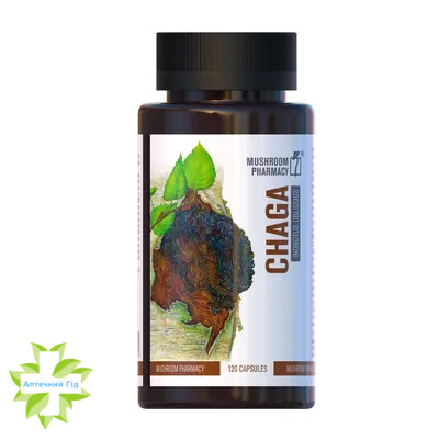 Міцелій гриба чага - 200 мг, екстракт плодового тіла гриба чага (Inonotus obliquus) (екстракт 5:1 еквівалентний 400 мг гриба чага) - 80 мг.