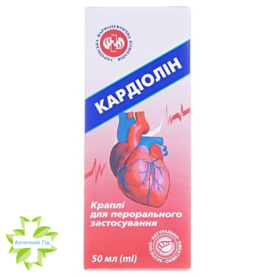 Кардіолін - комбінований препарат, що містить витяжку з лікарських рослин: трави горицвіту весняного, яка чинить легку діуретичну, седативну дію і має протиаритмічні властивості; плодів ялівцю звичайного, що мають діуретичний вплив; арніки квіток, які мають кардіопротекторну активність; м'яти листя, що виявляють помірну спазмолітичну, седативну, жовчогінну активність.