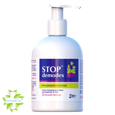 Шампунь лікувальний Стоп Демодекс / Stop Demodex® компанії - спеціально розроблений для боротьби з підшкірним кліщем демодекс, при ураженні волосистої частини голови, сприяє усуненню наслідків демодекозу, також пригнічує розвиток дрожжеподібного гриба pityrosporum ovale (він же malassezia furfur ) в волоссі голови. Підшкірні кліщі (Demodex folliculorum, Demodex brevis), дріжджоподібні гриби (Pityrosporum ovale або Malassezia furfur) розміщуються в фолікулах волосся, харчуючись клітинами, які беруть участь у створенні фолікули. Більше обирають місця з підвищеними виділеннями сальних залоз. При деяких обставинах можуть перероджуватися в агресивні форми і починати руйнувати волосяні мішечки, що сприяє вторгненню шкідливих бактерій і порушень обміну речовин. Цей процес може супроводжуватись запальними змінами (фолікуліт, отрубноподобний лишай, атопічний дерматит, себорейний дерматит, псоріаз та ін .). Шампунь Стоп Демодекс / Stop Demodex® - високоефективне лікування, здоров'я, сила і краса Вашого волосся.