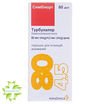 Симбікорт Турбухалер, 160 мкг/4,5 мкг, призначають дорослим та дітям віком від 12 років для регулярного лікування бронхіальної астми у разі доцільності застосування комбінованої терапії (інгаляційного кортикостероїду та агоніста β2-адренорецепторів тривалої дії):