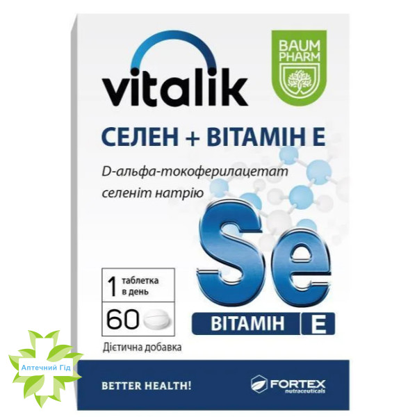 | Купить Цена 323,00 грн Виталик селен + витамин Е Baum Pharm, таблетки, №60 |
