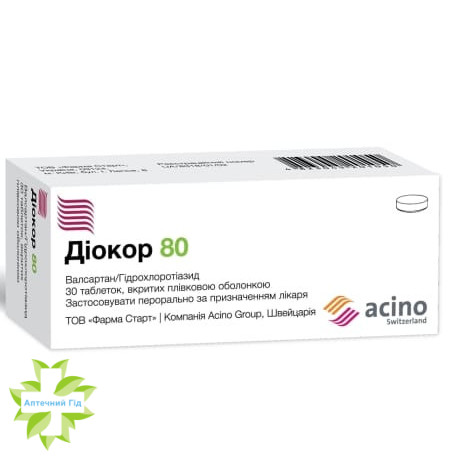 80 мг валсартану і 12,5 мг гідрохлоротіазиду (Діокор 80)