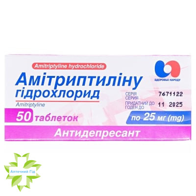 1 таблетка містить амітриптиліну гідрохлориду 25 мг;