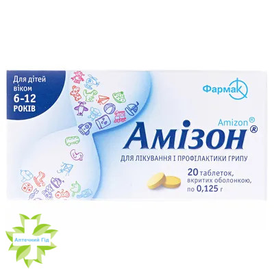 Вміст натрію в таблетці Амізон® 0,125 г: 0,285 мг/табл або 0,0124 ммоль/табл або 0,18 % від загальної маси таблетки.