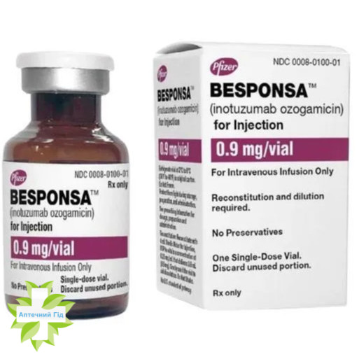 1 флакон містить 0,9 мг інотузумабу озогаміцину;