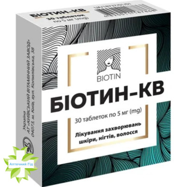 1 таблетка містить біотину 5 мг або 10 мг;