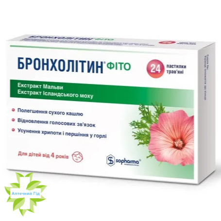 | Купити Ціна 265,00 грн Бронхолітин Фіто, трав'яні пастилки, №24 |