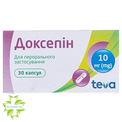 1 капсула містить доксепіну 10 мг або 25 мг у вигляді доксепіну гідрохлориду;