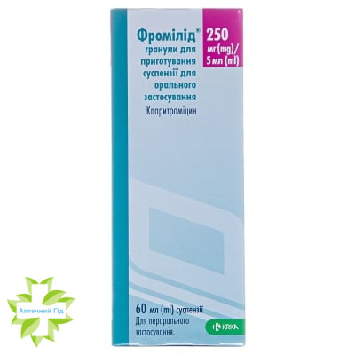 5 мл суспензії (1 шприц) містить 250 мг кларитроміцину;