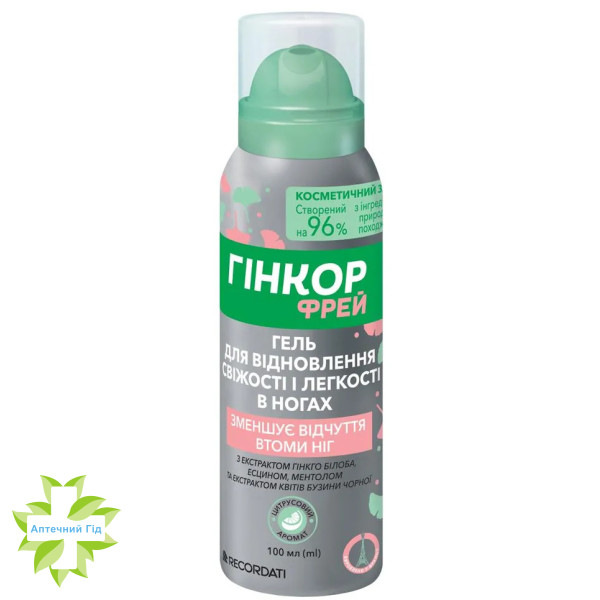 Гінкор Фрей, гель для відновлення свіжості і легкості в ногах по 100 мл у флак.