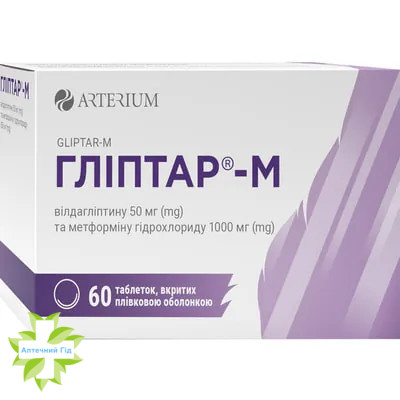 Гліптар®-М є комбінацією двох антигіперглікемічних речовин із різними механізмами дії, які покращують контроль глюкози у пацієнтів з діабетом II типу: вілдагліптин, представник сімейства інгібіторів дипептидилпептидази-4 (ДПП-4) та метформіну гідрохлорид, представник класу бігуанідів.