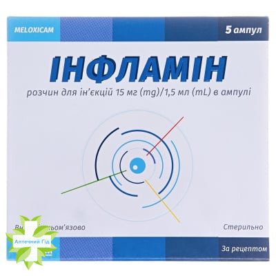 Інфламін - це нестероїдний протизапальний лікарський засіб класу енолієвої кислоти, що чинить протизапальну, аналгетичну та жарознижуючу дію. Інфламін має високу протизапальну активність на всіх стандартних моделях запалення. Загальний механізм зазначених ефектів може полягати у здатності Інфламіну інгібувати біосинтез простагландинів - медіаторів запалення.