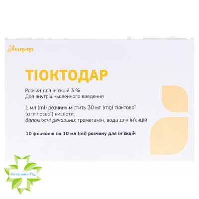 діюча речовина: 1 мл розчину містить 30 мг тіоктової (α-ліпоєвої) кислоти;