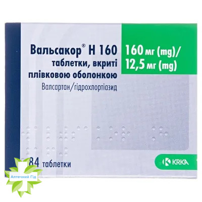Вальсакор H 160, таблетки 160 мг/12,5 мг, №84