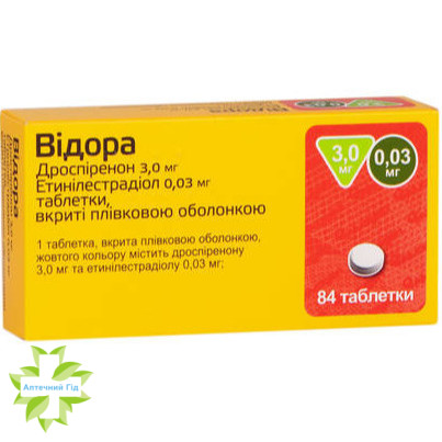 | Купити Ціна 962,00 грн Відора, таблетки 3,0 мг/0,03 мг, №84 |