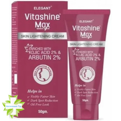 Крем VITASHINE Max покращує зовнішній вигляд шкіри, зменшуючи дрібні зморшки, жорсткість і поліпшує колір шкіри. Засіб подвійної дії для гіперпігментації, що допомагає зменшити рубці, плями, пошкодження шрамів, розтягування рубців, темних кіл під очима та опіків. Підходить для всіх типів шкіри.