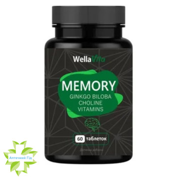 Дієтична добавка WELLA VITA MEMORY - джерело вітамінів групи В та інших біологічно активних речовин; сприяє нормальній роботі нервової системи та психічної діяльності; підвищує розумову працездатність та підтримує нормальні когнітивні функції мозку (зокрема процес концентрації уваги та здатність запамʼятовувати); має антиоксидантні властивості.